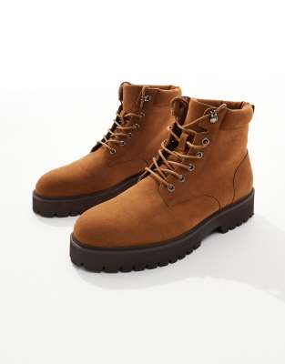 ASOS DESIGN lace up work boots in tan-Brown