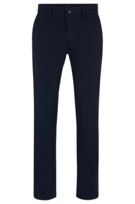 In a modern slim fit, these BOSS Menswear chinos are crafted in soft, overdyed satin made from stretch cotton for comfort. Rear logo trim.