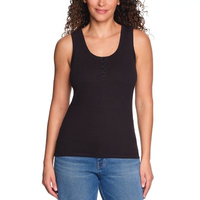 Effortless Everyday Essential This Ribbed Tank Top is designed for breathable comfort and modern style, making it a versatile choice for casual and layered outfits. Crafted from a soft ribbed knit blend of 96% cotton and 4% spandex, it offers a lightweight feel with just the right amount of stretch for easy movement. Stylish Details for a Fresh Look Featuring a scoop neckline and a racerback silhouette, this tank top is enhanced with a front placket and contrasting ribbed trim at the placket, neckline, and armholes. These subtle yet stylish accents, combined with clean lines and a tailored fit, make it perfect to wear alone or layered under jackets and cardigans. A Color for Every Mood Available in versatile Black, Multi, White, Red, and Navy, this tank top complements any wardrobe palette. With sizes ranging from XS to XXL, it’s designed to provide a comfortable and flattering fit for various body types. Thoughtful Fit and Care With a garment length of 24½ inches, this tank top hits at the hip for a flattering silhouette that pairs effortlessly with jeans, skirts, or shorts. Durable and easy to care for, it’s machine washable, making it ideal for everyday wear that matches your active lifestyle.