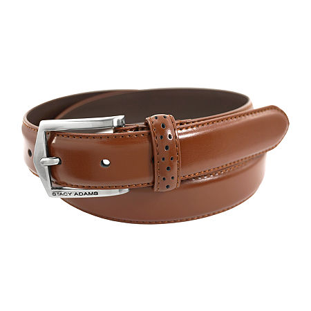 30mm genuine leather belt. This belt has a smooth look with a perforated brogue design on the keeper. Features a brushed silver buckle with the Stacy Adams logo. This belt can be worn for any occasion for either a casual or dress look.Belt Length: 32 InBase Material: 100% LeatherBelt Width: 1 1/4 InCare: Wipe CleanCountry of Origin: Imported